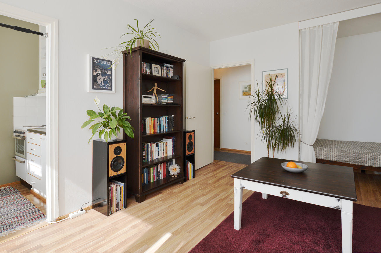 Asunnon ei tarvitse olla kalliisti sisustettu näyttääkseen hyvältä. Oikeilla kuvakulmilla ja riittävällä valaistuksella pieni ja vaatimatonkin asunto saadaan tuomaan parhaat puolensa näkyviin. Ylimääräisen tavaran raivaaminen lisää tilavuuden tuntua.